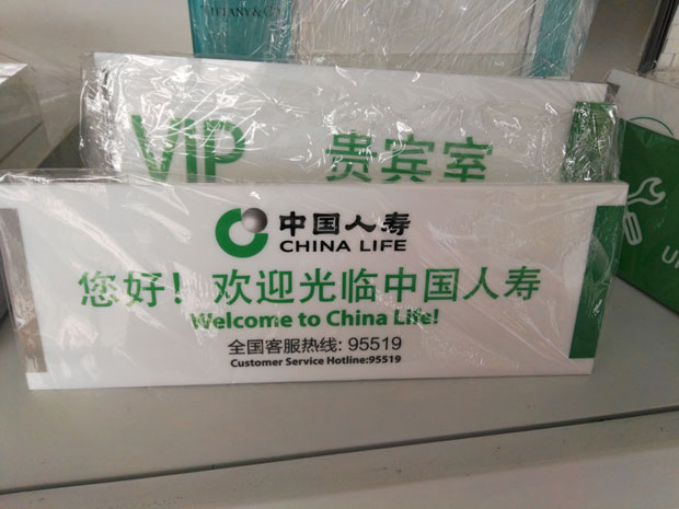 剛制作的中國人壽亞克力指示牌看看